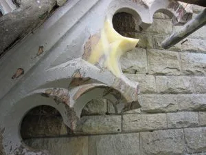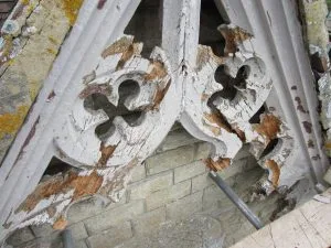 An example of a heritage moulding that needs to be repaired on a listed building.