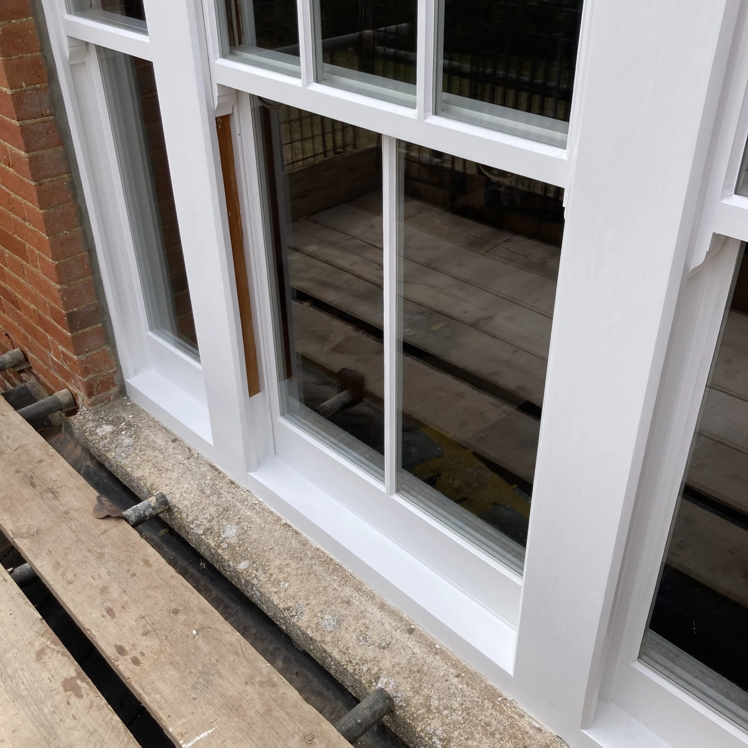 The project required extensive sash box renovation, replacement double glazed hard wood sash windows, draught proofing, and decoration. Renovations included replacing the rotten sills and lower areas of the sash window box with sapele hardwood timber, all whilst matching the original profiles using the Repair care epoxy resin process.